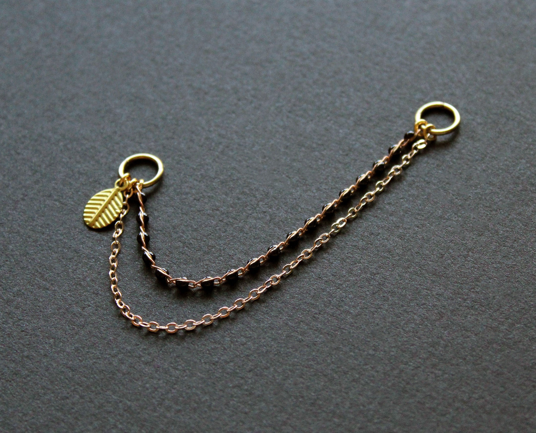 Transform your everyday footwear into a bold fashion statement with the Lani Shoe Chain in versatile black and gold color combo. This playful accessory features an eye-catching modern design featuring a cute brass leaf charm that instantly transforms your sneakers, boots, or rollerskates into statement fashion.